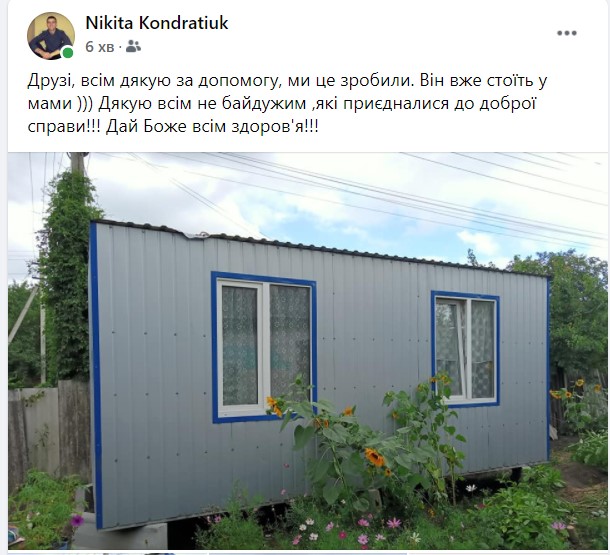 Мова не про квартиру чи будинок, а невеликий вагончик, в якому тепер житиме Ніна Кондратюк.