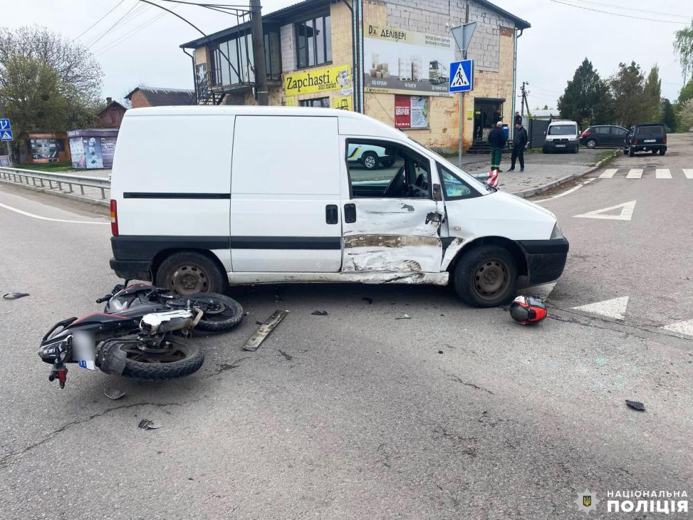 В Острозі внаслідок ДТП тяжко травмувався мотоцикліст. Він перебував у мотошоломів, однак не мав посвідчення водія.