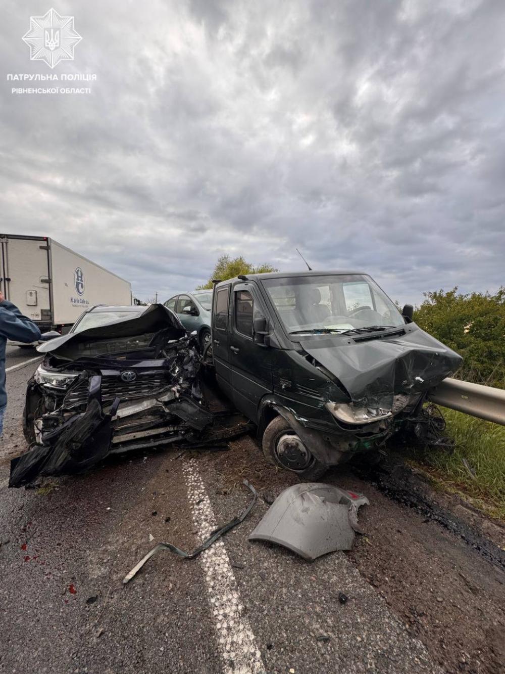 Як повідомили в пресслужбі патрульної поліції Рівненщини, водій Renault Master на нерегульованому перехресті, повертаючи ліворуч, не надав переваги в русі автомобілю Mercedes-Benz Sprinter. Як результат - останній по інерції зіткнувся з Toyota RAV4, яка рухалася назустріч.