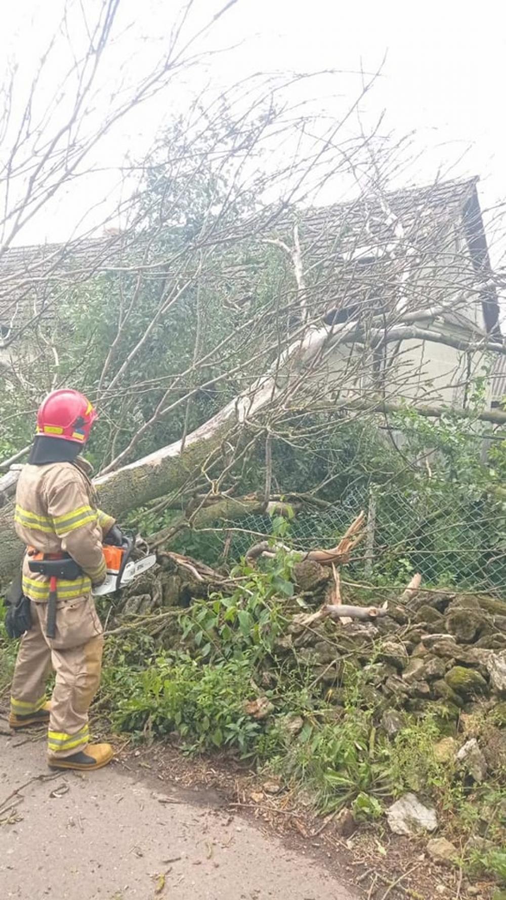 Працівники ДСНС надавали допомогу населенню по розчищенню проїзної частини дороги від поваленого дерева у селі Заруддя Дубенського району.