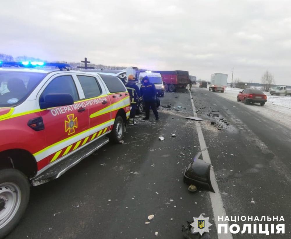 У результаті ДТП водій легковика, 40-річний житель м. Бердичева, отримав тілесні ушкодження, несумісні з життям.