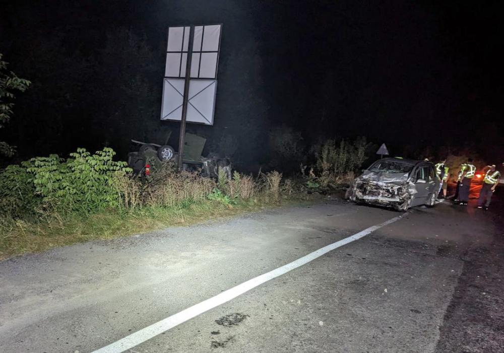 Від удару останній транспортний засіб відкинуло у кювет із подальшим перекиданням, а «Opel» — розвернуло.