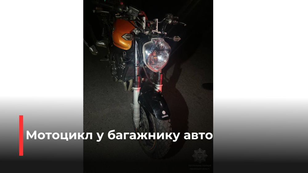 Під час поверхневої перевірки в багажному відділенні автомобіля інспектори виявили мотоцикл Yamaha. 22-річний водій не надав документів на двоколісний транспортний засіб, а під час огляду поліцейські помітили відсутність номерних позначень на моторному блоці та рамі.