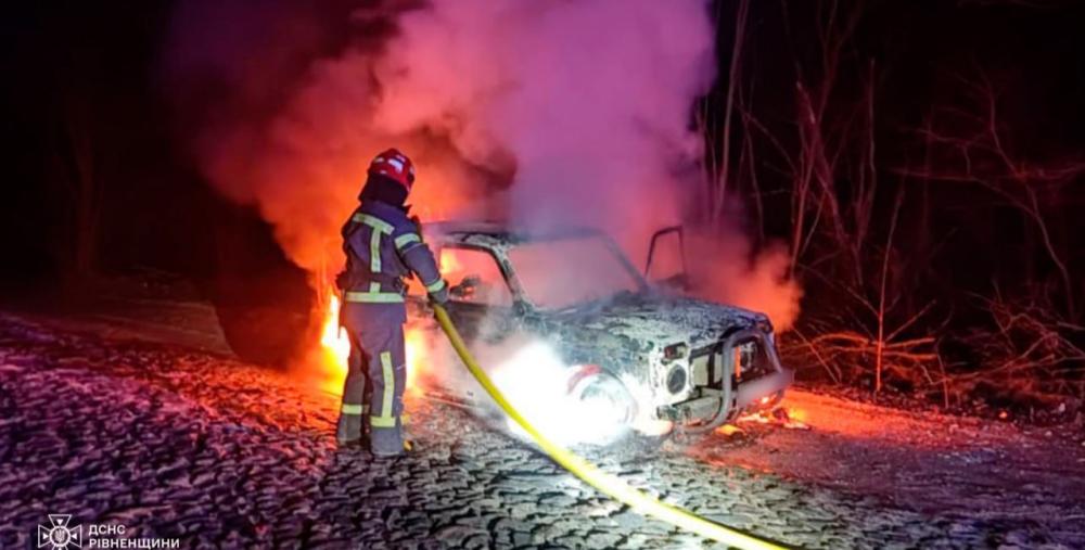 Рокитнівські рятувальники ліквідували пожежу. Внаслідок загоряння вогнем знищено легковий автомобіль ВАЗ 2121.