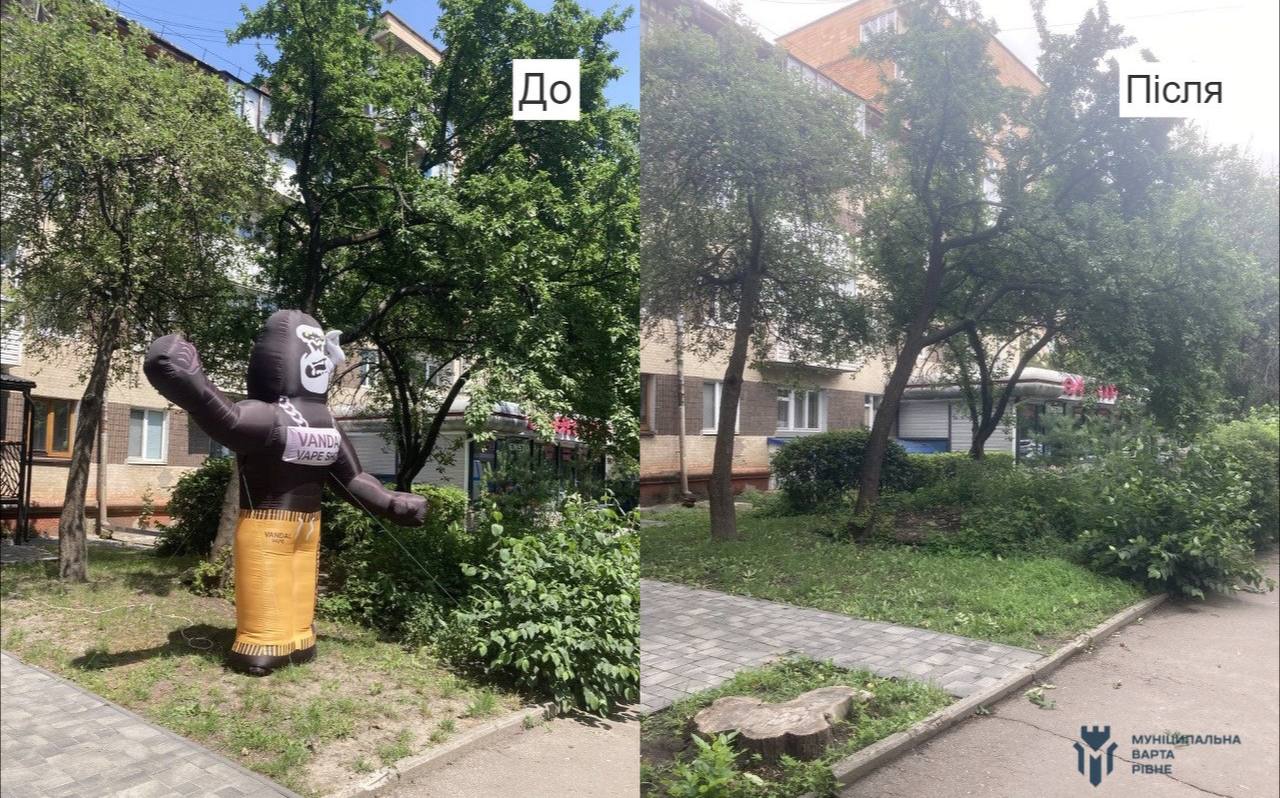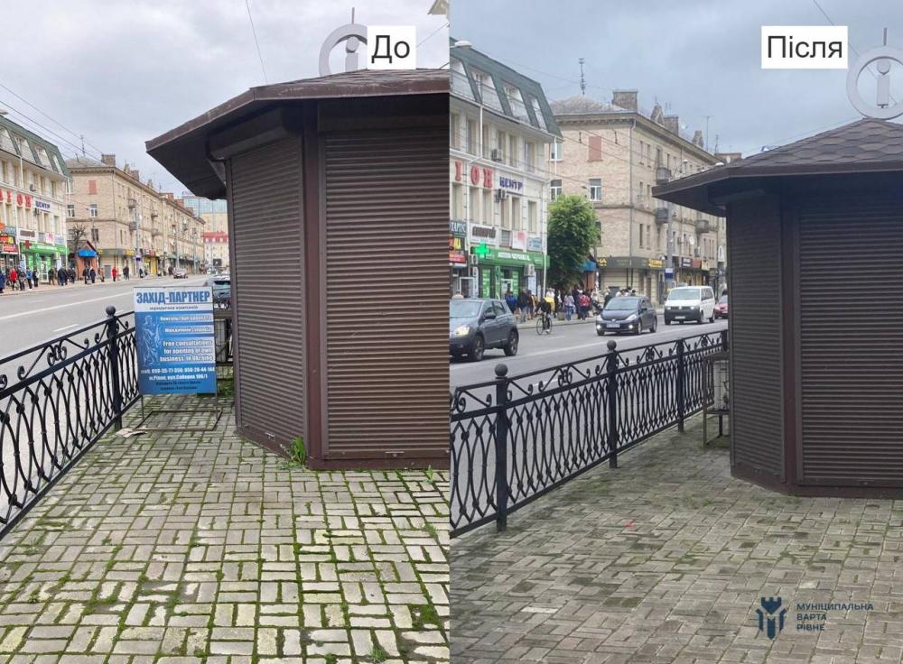 Нагадуємо, що відповідно до п. 5.1.13 правил благоустрою Рівного заборонено самовільно встановлювати рекламоносії, різноманітні конструкції, інформаційно-рекламні плакати.