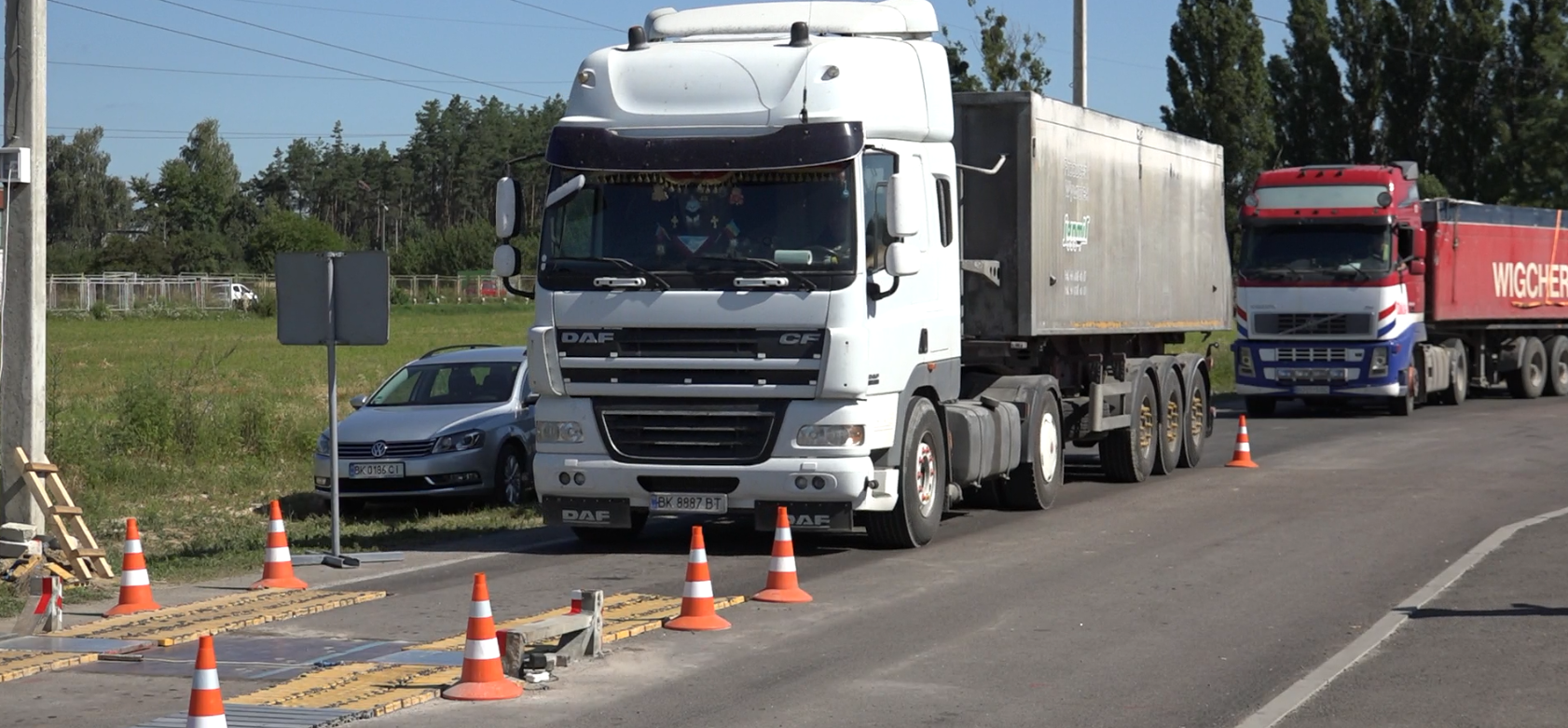 У сильну спеку багатотонні вантажівки руйнують асфальт. Аби цього уникнути, на Рівненщині діють майданчики габаритно-вагового контролю. Ось один із них поблизу села Нова Любомирка, на автодорозі Городище-Рівне-Старокостянтинів.