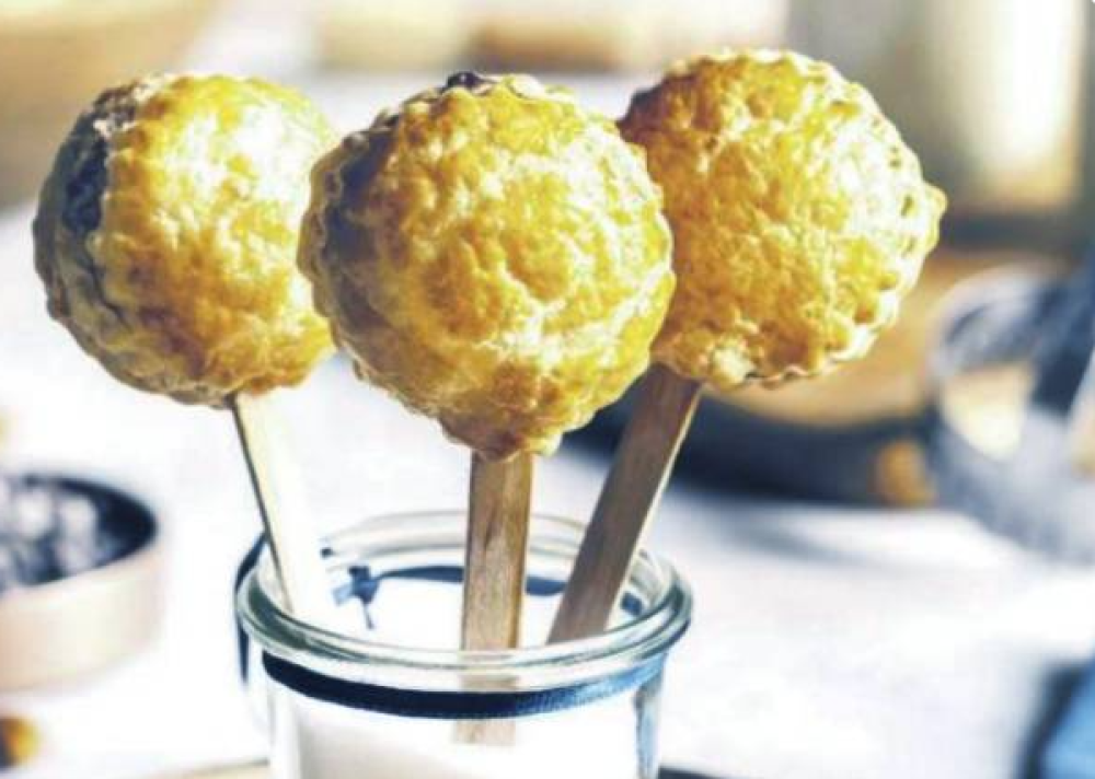 - На край тіста наносимо трохи яєчного жовтка і закриваємо кожну міні-галетку іншим кружечком листкового тіста