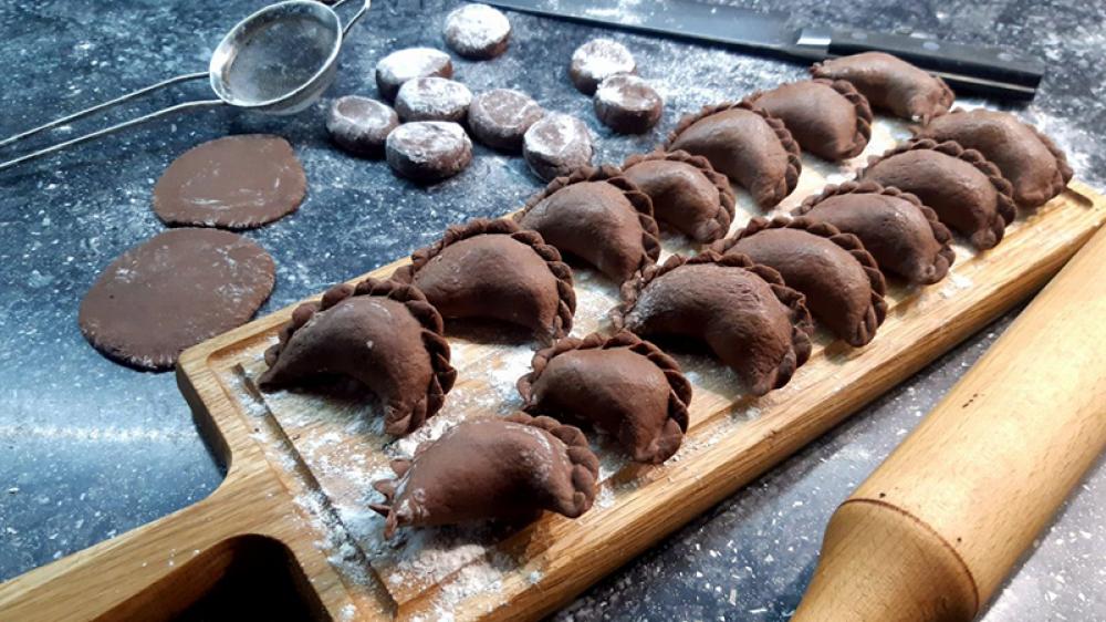 Усі вже звикли до "білих" вареників, а якщо до тіста додати какао?. Шоколад і вишня дуже добре поєднуються, тож на вас чекають абсолютно нові і дуже смачні вареники, які приємно здивують.