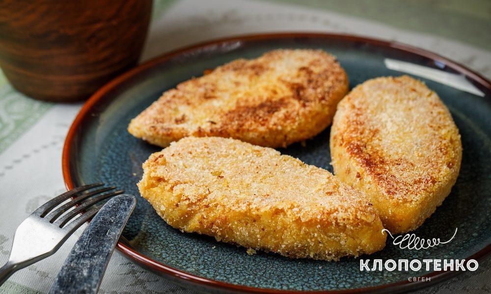 - Розігрійте сковорідку з 3 ст.л. олії, смажте котлети по 2-3 хвилини з кожного боку до золотавої скоринки.