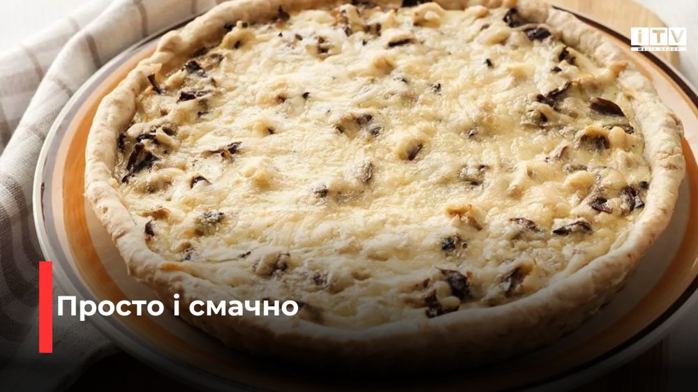 - Натираємо на тертці сир, виймаємо форму з духовки й посипаємо зверху кіш лорен. Випікаємо ще 30 хвилин.