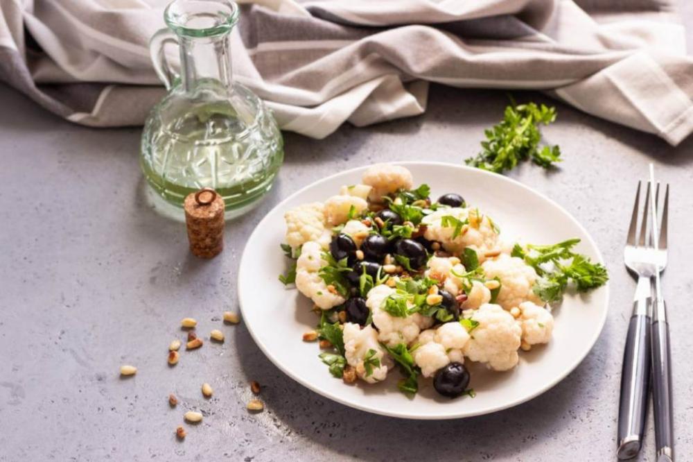 Цей салат простий у приготуванні та дійсно смачний, а запікання у духовці дозволяє максимально зберегти всі поживні сполуки цвітної капусти.