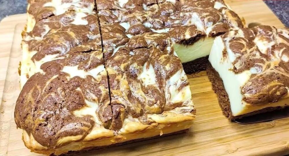 - Вилийте сирний крем на тісто і рівномірно розподіліть його ложкою.