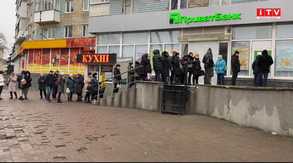 Рівняни продовжують стояти у чергах до магазинів, аби придбати продукти першої необхідності. Не менш людно і поряд з аптеками. У місті утворюються кілометрові затори до заправних станцій. Проте спочатку усі вичікують годинами у чергах до банкоматів. Подекуди готівки тимчасово немає. Попри ажіотаж, очільник області закликає усіх зберігати спокій.
