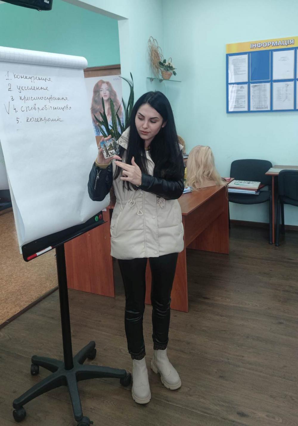 «Заняття із слухачами націлені на подолання різних труднощів, запобігання та вирішення конфліктів, з’ясування їх причин. Ми вчимося вибудовувати «шляхи до себе», понижувати тривожність, зміцнювати впевненість у власних силах. В умовах війни важливо і вкрай необхідно відчувати щиру підтримку, вміти керувати емоціями, віднаходити позитив у спілкуванні», - поділилася Оксана Василівна. В рамках Всеукраїнської акції «16 днів проти насилля» слухачі стали учасниками тематичних семінарів, переглянули мотивуючий фільм «Зупини мене, якщо зможеш».
