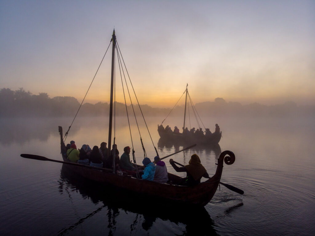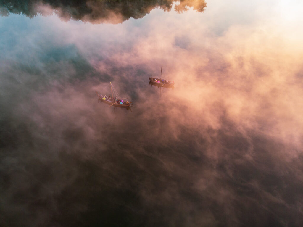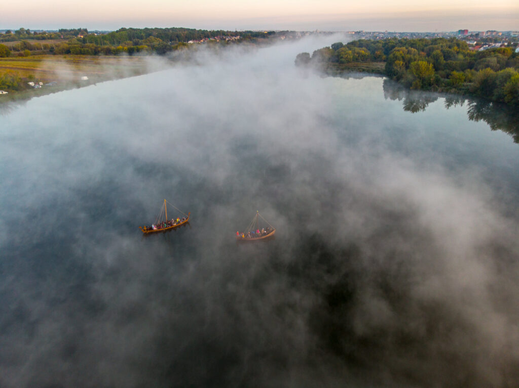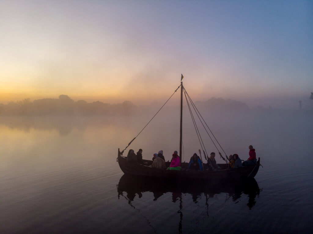 Відвідувачі парку історичної реконструкції "Городище Оствиця" каталися на прадавніх човнах та спостерігали за сходом сонця крізь ранковий туман.