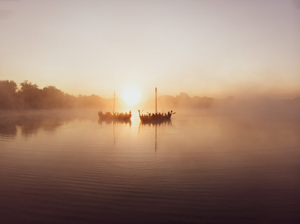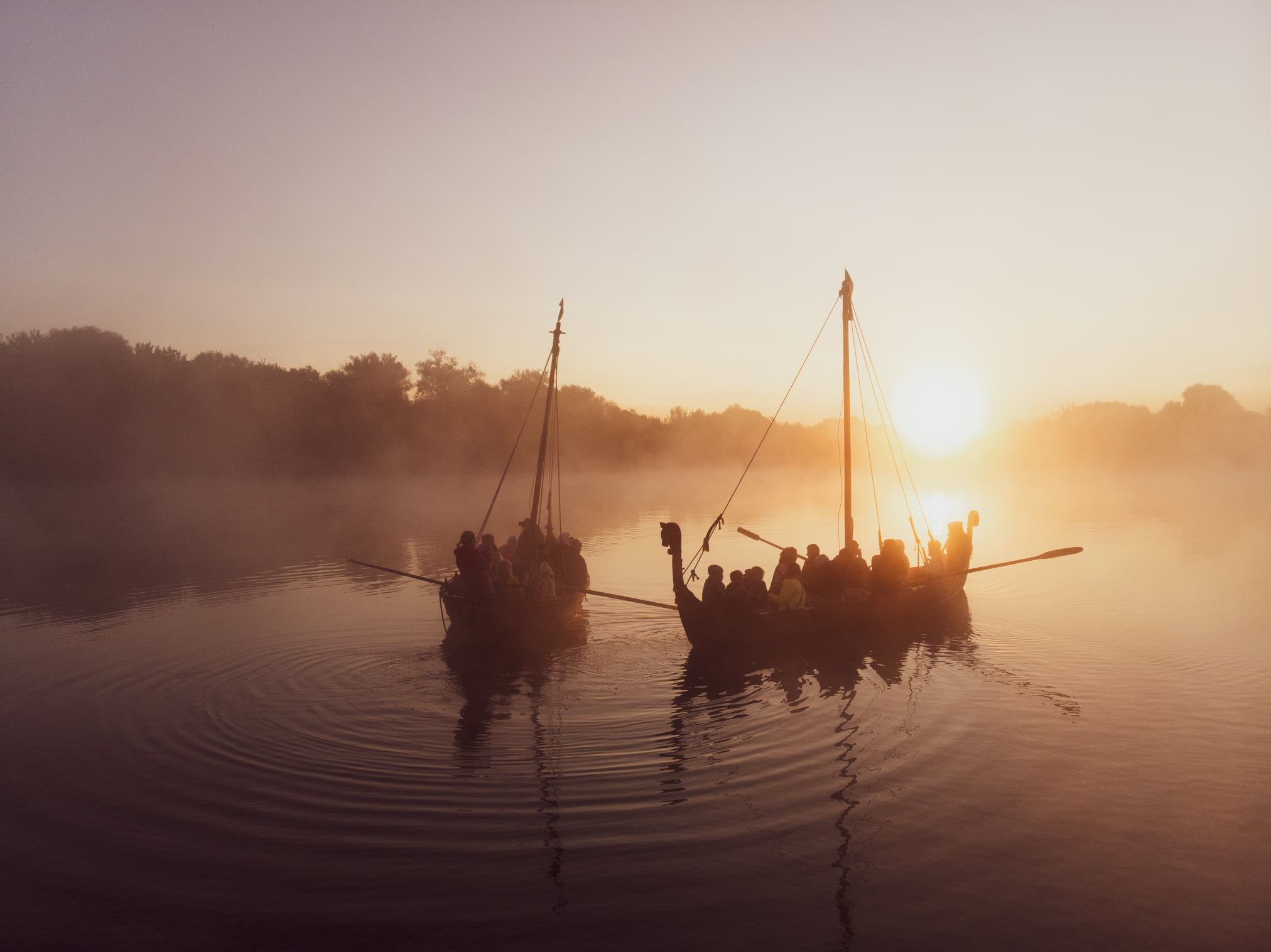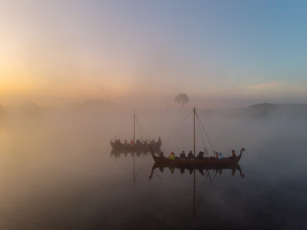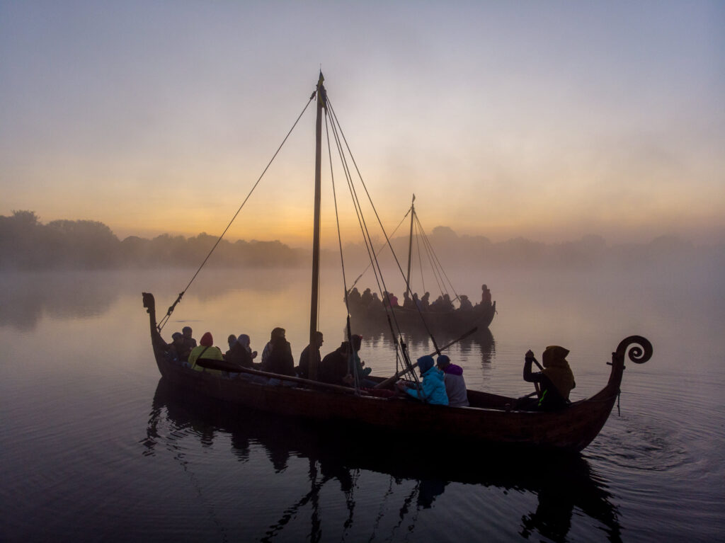 Відвідувачі парку історичної реконструкції "Городище Оствиця" каталися на прадавніх човнах та спостерігали за сходом сонця крізь ранковий туман.