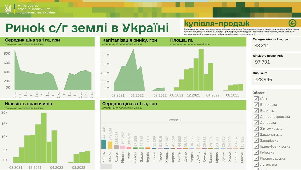 - на Київщині – 445 445 грн за 1 га;