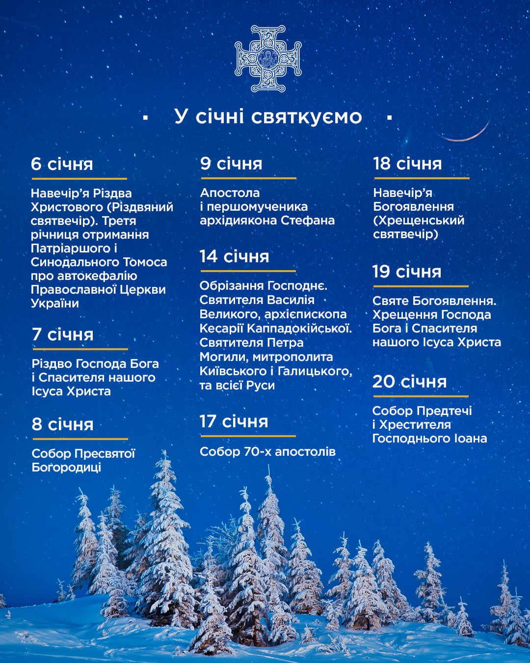 Січень багатий на свята й визначні події. Про основні з них та їх суть йдеться на сторінці Православна Церква України. Отож: