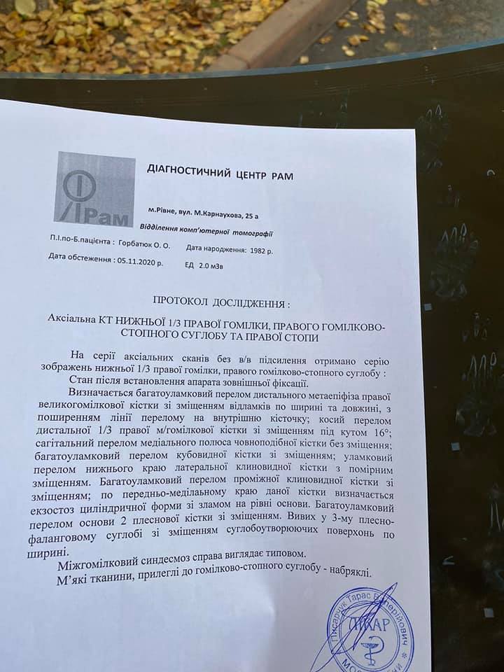 В результаті у нього переломи кісток стегна, гомілки і стопи.