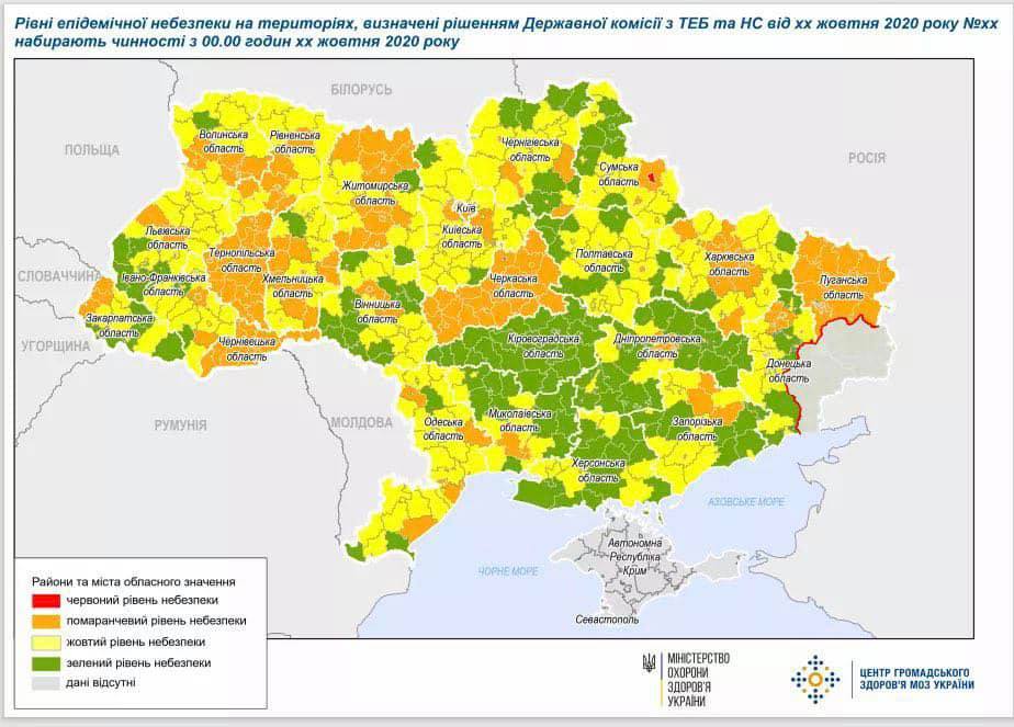 На позачерговому засіданні Державної комісії з питань техногенно-екологічної безпеки та надзвичайних ситуаційи ухвалили нове епідемічне зонування.