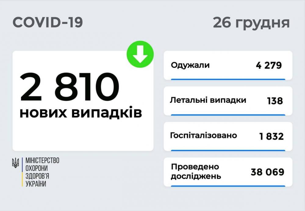 За добу в Україні зафіксовано 2 810 нових підтверджених випадків коронавірусної хвороби COVID-19. Серед них 240 дітей та 30 медпрацівників.