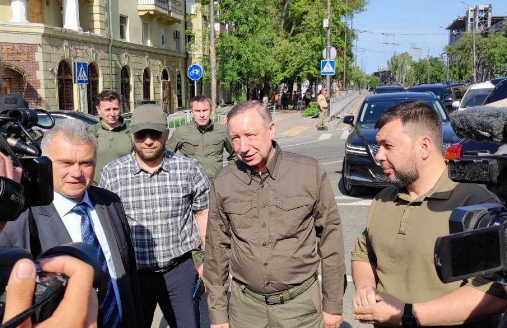 Майже зараз голова окупаційної адміністрації Маріуполя Іващенко разом з ватажком “днр” Пушиліним проводять екскурсію по руїнам Драматичного театра Маріуполя губернатору Санк-Петербурга Олександру Белову. Екскурсію. По Драм театру. Офіційні посадови особи росії. На місці загибелі 600 цивільних від російської авіабомби, - йдеться у повідомленні.