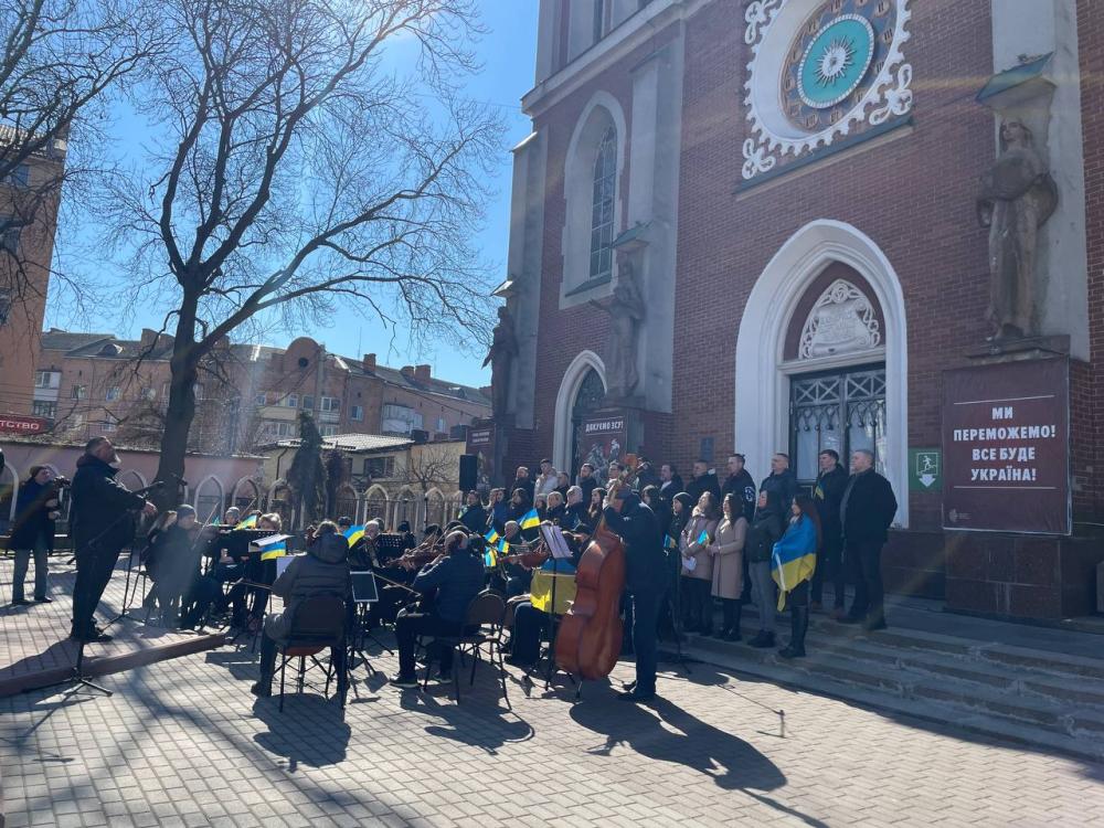 Просто неба хор рівненських співаків та Академічний камерний оркестр Рівненської обласної філармонії під керівництвом Юрія Скрипника та заслуженого діяча мистецтв України, хормейстера Національної опери України Олександра Тарасенка виконують ряд відомих музичних творів.