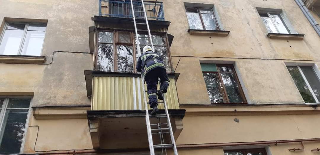 Рятувальники по висувній пожежній драбині дісталися третього поверху та через балкон потрапили до квартири.
