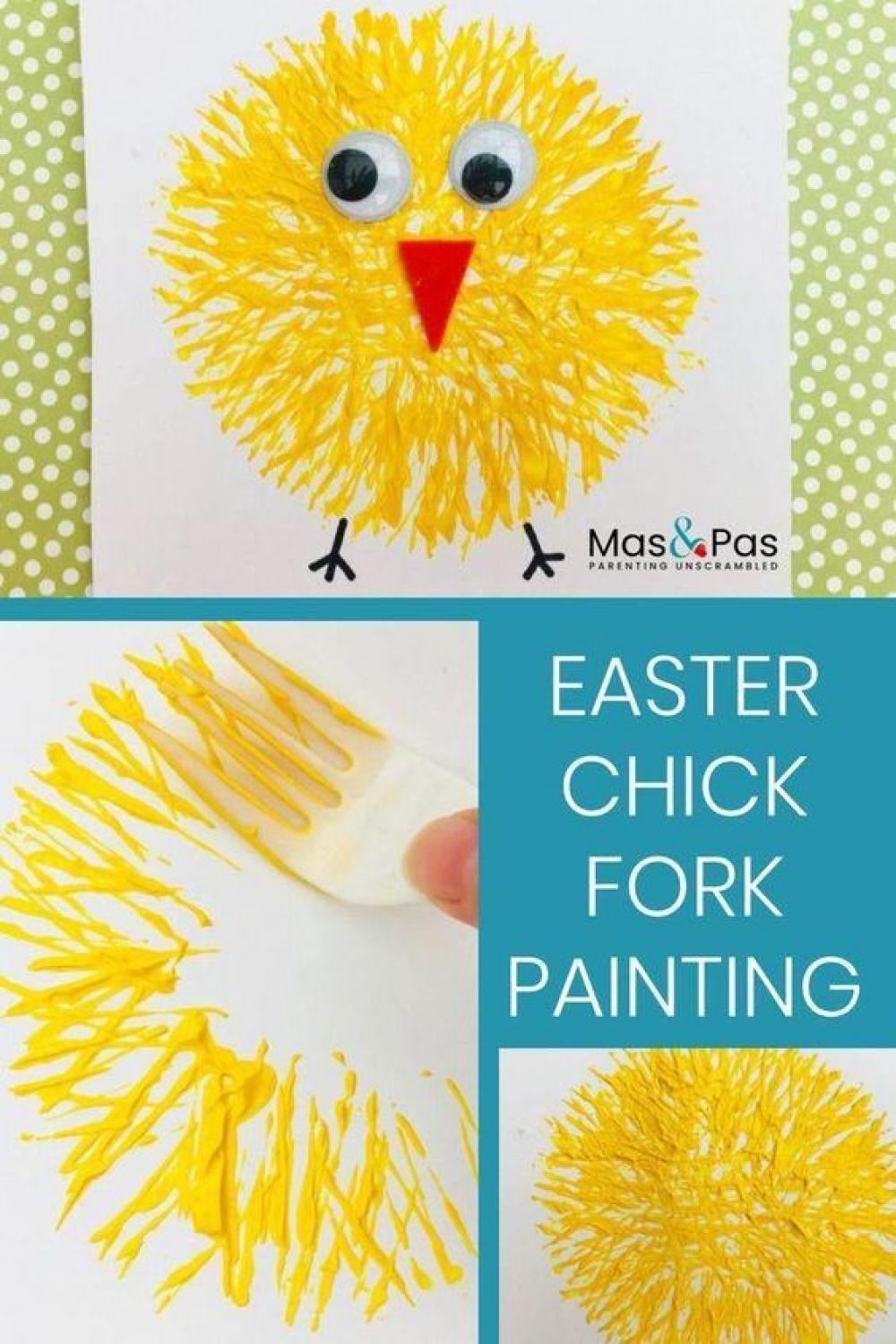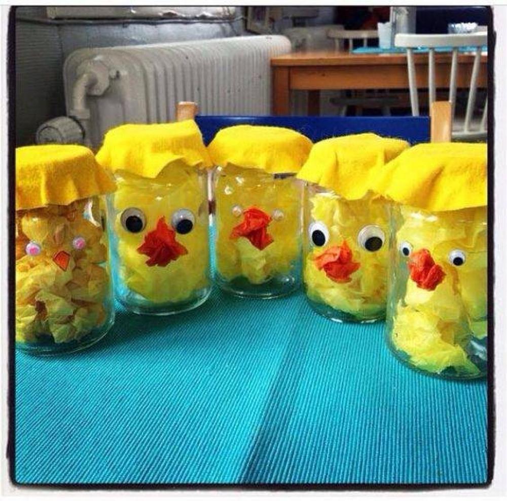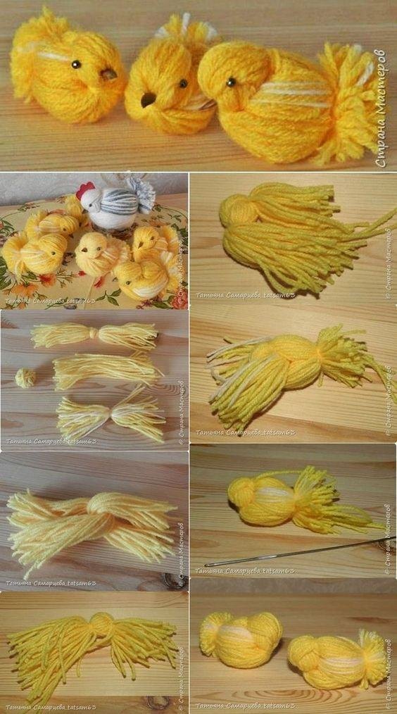 Ще одна прекрасна поробка до великодніх свят. Курчаток можна малювати пластичковою виделкою і пальчиками, вирізати, майструвати з ниток і навіть “вирощувати” в склянках.