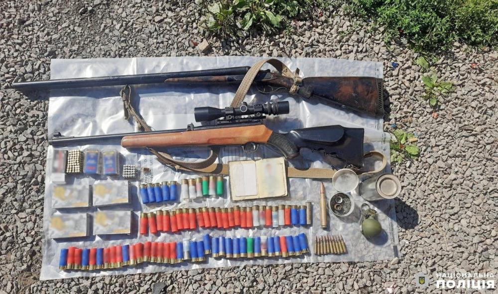 Так вчора, за місцем проживання 32-річного жителя села Томашгород під час обшуку в господарчій будівлі поліцейські виявили та вилучили гранату, 297 патронів різного калібру, дві гвинтівки, одна з яких з пристроєм для прицілювання, порох та каміння бурштину-сирцю.
