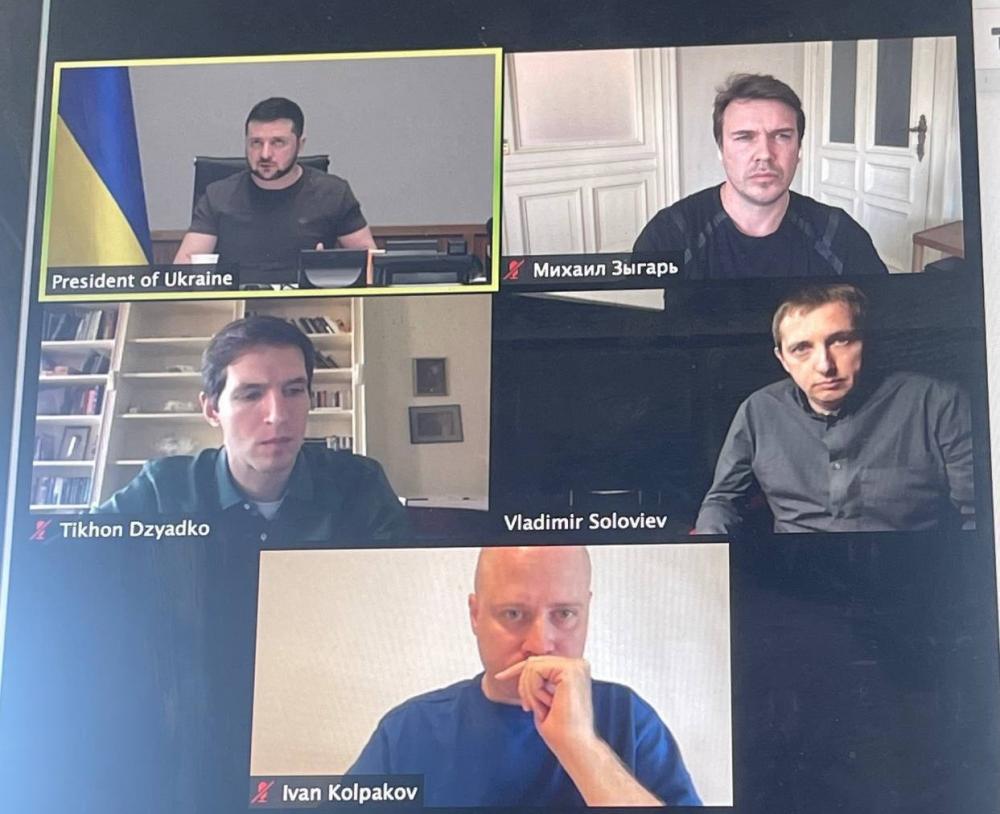 "У неділю, 27 березня, з президентом України здзвонилися російські журналісти. Зокрема, головний редактор "Медузи" Іван Колпаков, головний редактор телеканалу "Дождь" Тихон Дзядко, письменник і журналіст Михайло Зигар, кореспондент "Комерсанта" Володимир Соловйов", - йдеться у повідомленні.