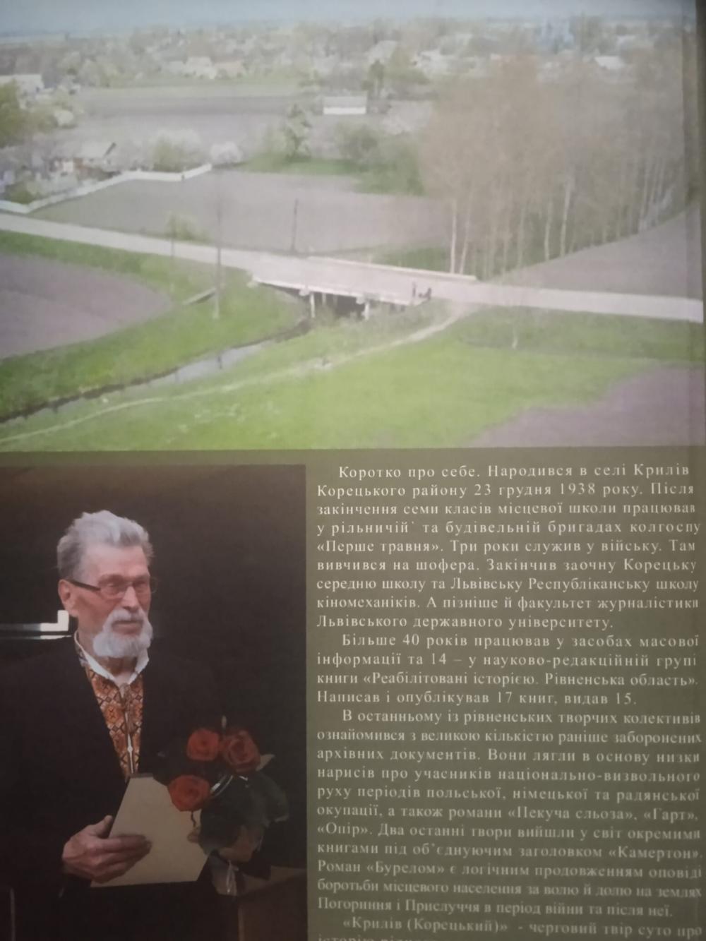 Спиридон Гнатович Кравчук - журналіст, літератор, краєзнавець та член Рівненської обласної організації Національної спілки краєзнавців України родом із села Крилів, що на Кореччині.