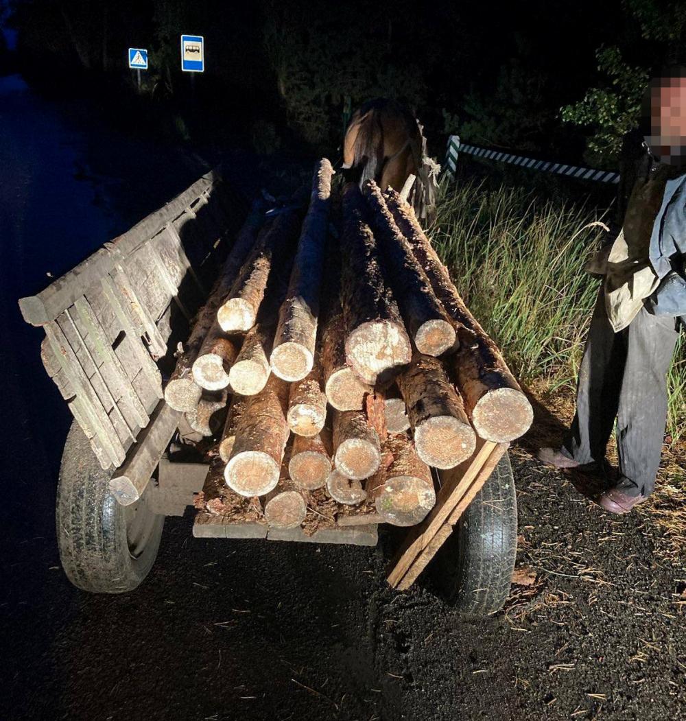 Жодних підтверджуючих документів чоловік не мав, тож на місце події викликали слідчо-оперативну групу. Під час огляду на підводі виявили 22 соснові колоди довжиною орієнтовно 2,7 м кожна. Пізніше у лісовому масиві чоловік показав, де саме викрав заготовлену лісгоспом деревину.