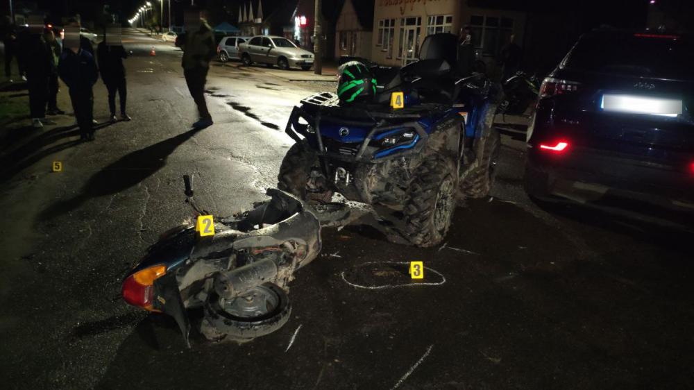 Слідчо-оперативна група на місці події встановила, що 24-річний водій квадроцикла, виїжджаючи із парковки, не надав переваги в русі та допустив зіткнення із скутером, на якому перебували двоє малолітніх місцевих жителів.