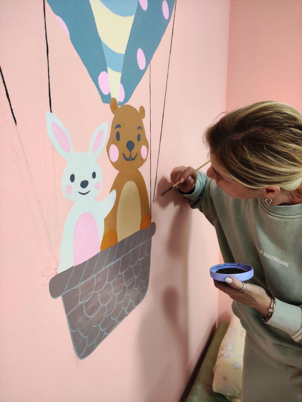 Художниці розмалювали п'ять стін у відремонтованому Центрі відновного лікування для дітей з органічними ураженнями центральної нервової системи та порушенням функції опорно-рухового апарату.
