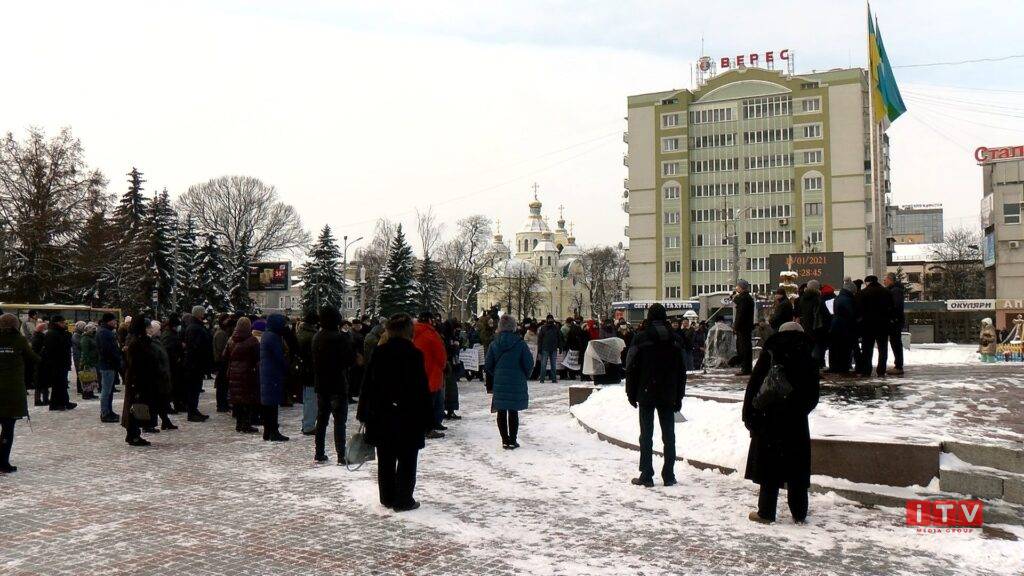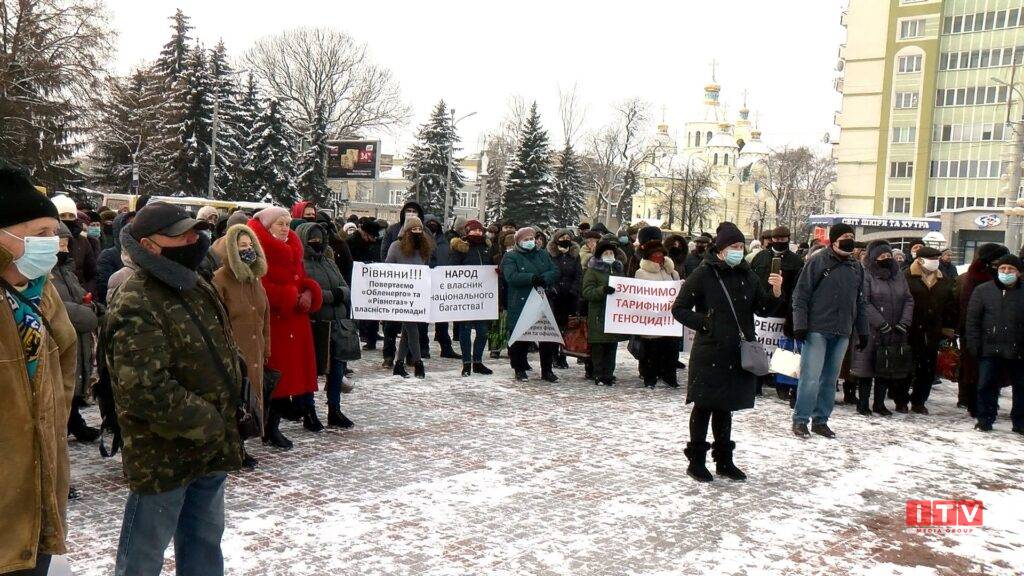 У Рівному мітингують біля облдержадміністрації. Люди обурені підвищення тарифів на газ та електроенергію.