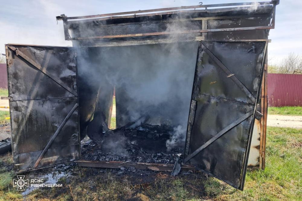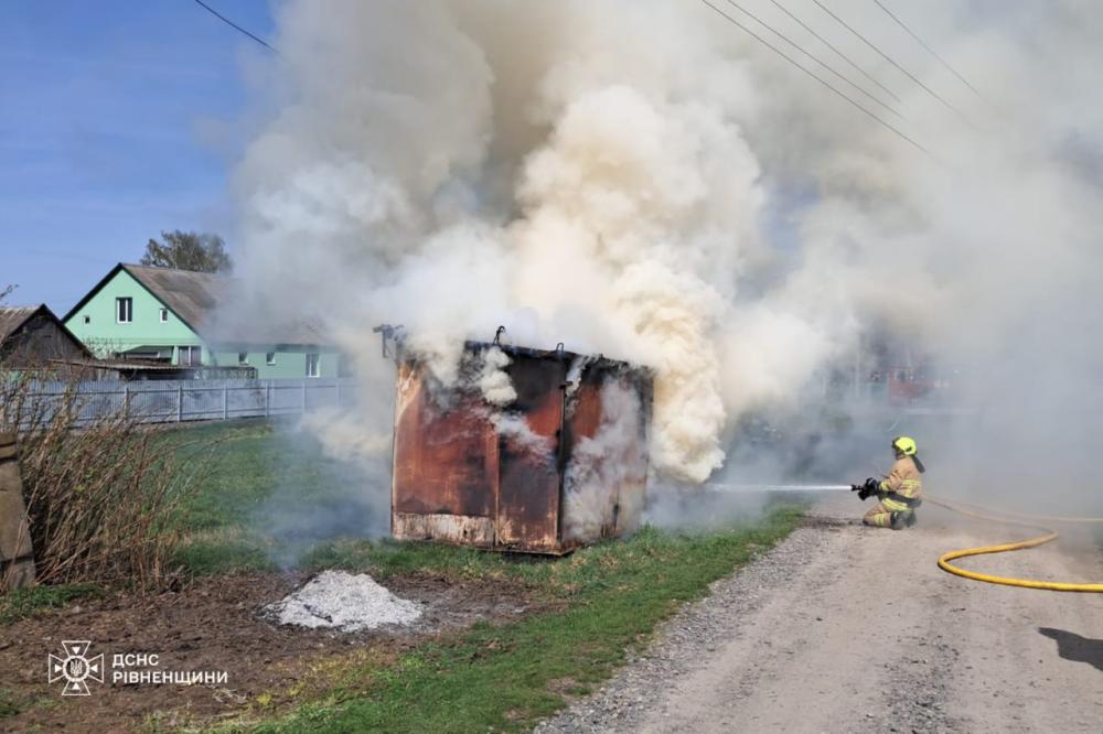 Днями рятувальники ліквідували пожежу металевого вагончика в селищі Клевань Рівненського району.