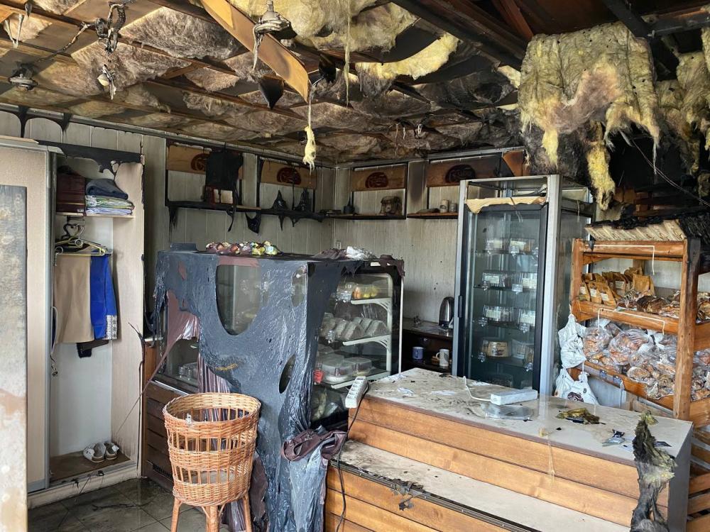 Вогнем знищено стелю та стіни приміщення павільйону, два стелажі, близько 100 кг хлібної випічки. Загальна площа пожежі склала близько 15 м.кв.