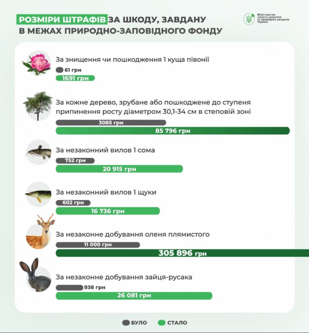 За словами урядовців, браконьєри, сплативши мізерний штраф, отримували значно більший прибуток від незаконно виловленої риби чи, наприклад, від зрубленої деревини.